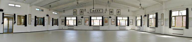 太極館正前方墻壁上莊嚴地懸掛著道教創始人老子的畫像,兩側依次懸掛著太極拳世系表、太極拳簡史及北派名家略傳,還有太極拳祖師之一:張三豐、吳氏太極拳先師的選介。同時楊淑芬老師親筆書寫的 「孝悌忠信禮義廉恥仁愛和平」、「養天地正氣,法古今完人」、「浩然正氣」等諸多墨寶,為太極館帶來文武兼備的濃濃氣氛,置身其中,如同沐浴在祖德無盡的庇蔭之下,令學人身心不禁肅然起敬。