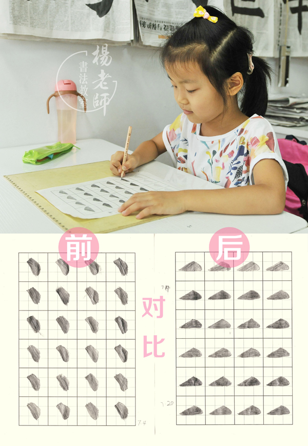 專注力有了很明顯的提升,上圖的描紅對(duì)比可以看到,